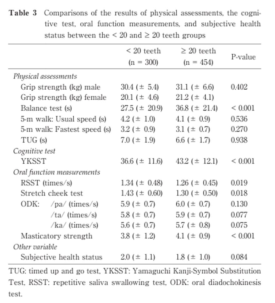 Association of Number of Teeth with Cognitive and Physical Functions in Japanese Older Adults: A Cross-sectional Study