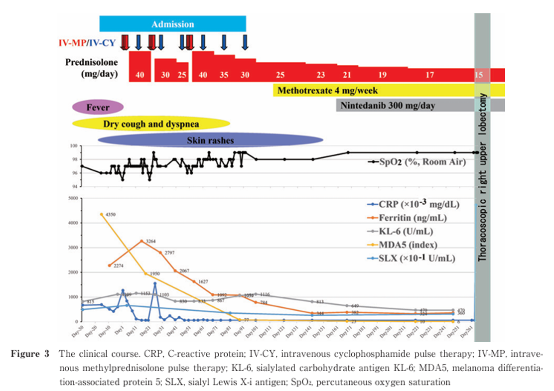 Successful Treatment for Anti-melanoma Differentiation associated Protein 5 Antibody-positive Dermatomyositis/ Interstitial Lung Disease Associated with Lung Adenocarcinoma